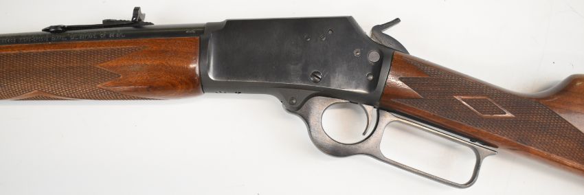 Marlin Model 1894CS .38/.357 Winchester style underlever-action rifle with chequered grip and forend, adjustable sights, sling mounts and 19 inch barrel, overall length 91cm, serial number 04084861. PLEASE NOTE THAT A VALID RELEVANT FIREARMS CERTIFICATE IS REQUIRED TO VIEW OR PURCHASE THIS LOT AND FOR ALL SHOTGUNS OR RIFLES PLEASE ENSURE YOU HAVE THE RELEVANT CERTIFICATE BEFORE BIDDING.