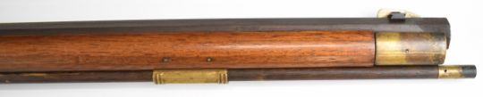 Pedersoli .45 muzzle loading percussion hammer action Kentucky rifle with brass scrolling trigger guard, butt plate and mounts, storage compartment to the stock, brass tipped wooden ram-rod, fixed sights and 28.5 inch rifled octagonal barrel, overall length 110cm, serial number DA94425. PLEASE NOTE THAT A VALID RELEVANT FIREARMS CERTIFICATE IS REQUIRED TO VIEW OR PURCHASE THIS LOT AND FOR ALL SHOTGUNS OR RIFLES PLEASE ENSURE YOU HAVE THE RELEVANT CERTIFICATE BEFORE BIDDING.