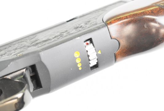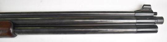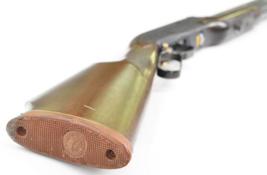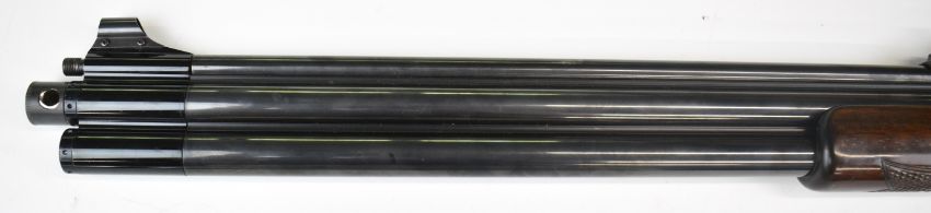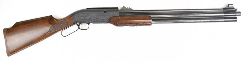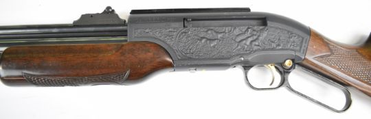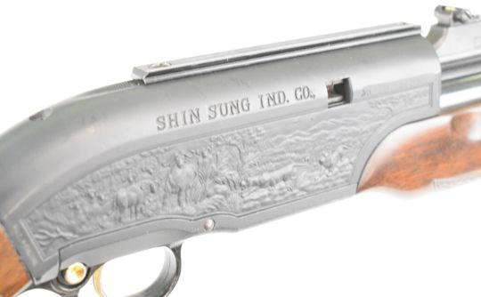 Shin Sung Career II 707 .22 underlever-action PCP FAC air rifle with scenes of dogs hunting wild boar and cats hunting buffalo to the action, chequered grip and forend and adjustable sights, serial number SS01-550378. PLEASE NOTE THAT A VALID RELEVANT FIREARMS CERTIFICATE IS REQUIRED TO VIEW OR PURCHASE THIS LOT AND FOR ALL SHOTGUNS OR RIFLES PLEASE ENSURE YOU HAVE THE RELEVANT CERTIFICATE BEFORE BIDDING.