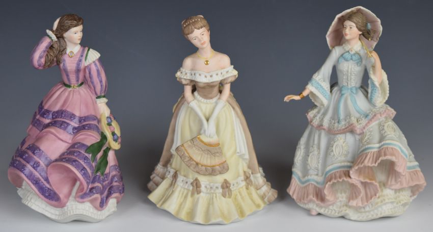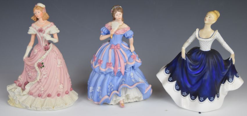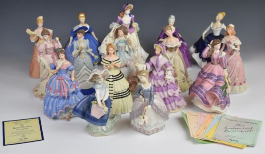 Sixteen Wedgwood, Coalport, Royal Doulton and Lladro figurines, some with limited edition certificates