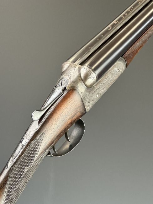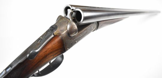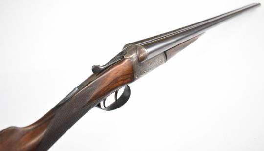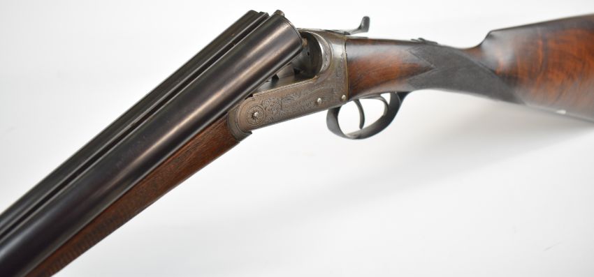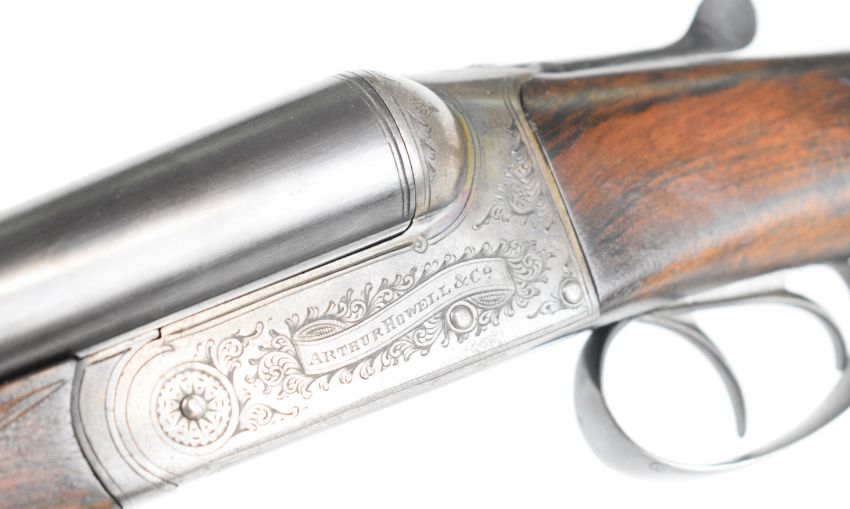 Arthur Howell & Co 20 bore side by side shotgun with named and engraved locks, engraved underside, thumb lever and fences, chequered grip and forend, vacant cartouche to the undersode of the stock, double trigger and named 2½ inch chambered 26 inch barrels choked ¾ and cylinder, overall length 110cm, length of pull 38.5cm, serial number 7476, in fitted case. PLEASE NOTE THAT A VALID RELEVANT SHOTGUN CERTIFICATE IS REQUIRED TO VIEW OR PURCHASE THIS LOT AND FOR ALL SHOTGUNS OR RIFLES PLEASE ENSURE YOU HAVE THE RELEVANT CERTIFICATE BEFORE BIDDING.