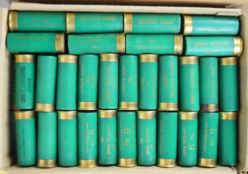 Over five hundred 12 bore shotgun cartridges together with a leather cartridge belt, cleaning rods and a knife with stag antler handle in leather sheath. PLEASE NOTE THAT WE CANNOT OFFER OUR USUAL POSTAGE SERVICE FOR THIS LOT, AND THAT A VALID RELEVANT SHOTGUN CERTIFICATE IS REQUIRED TO VIEW OR PURCHASE THIS LOT AND FOR ALL SHOTGUNS OR RIFLES PLEASE ENSURE YOU HAVE THE RELEVANT CERTIFICATE BEFORE BIDDING.