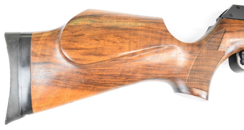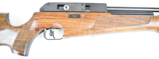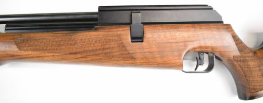 BSA Super 10 .22 FAC PCP left handed air rifle with chequered semi-pistol grip and forend, raised cheek piece, adjustable trigger, 10 shot magazine and sound moderator, serial number DP12854. PLEASE NOTE THAT A VALID RELEVANT FIREARMS CERTIFICATE IS REQUIRED TO VIEW OR PURCHASE THIS LOT AND FOR ALL SHOTGUNS OR RIFLES PLEASE ENSURE YOU HAVE THE RELEVANT CERTIFICATE BEFORE BIDDING.