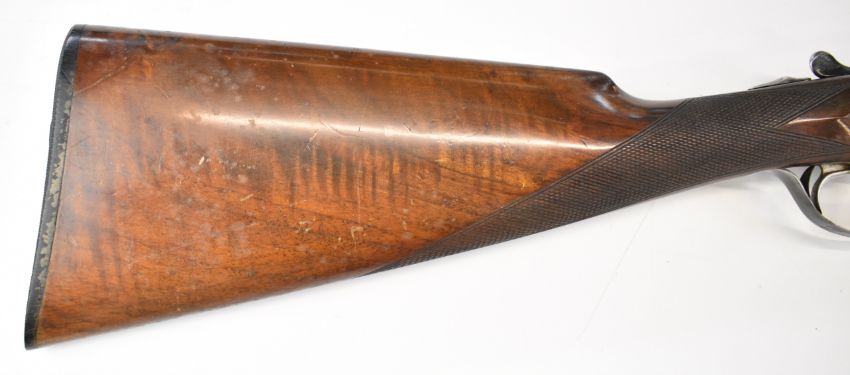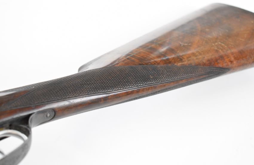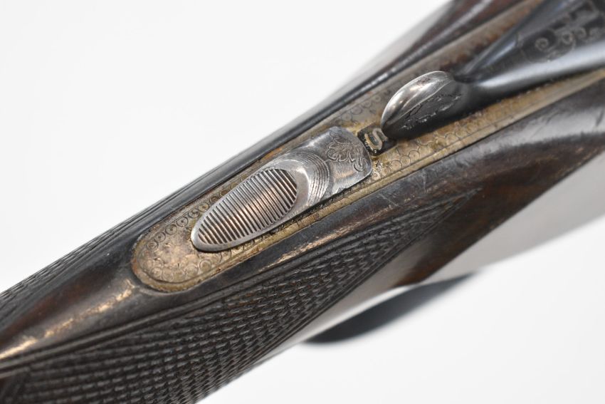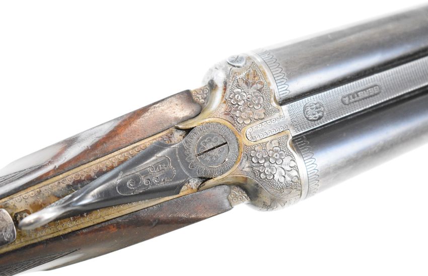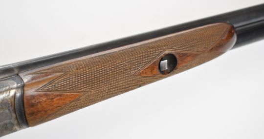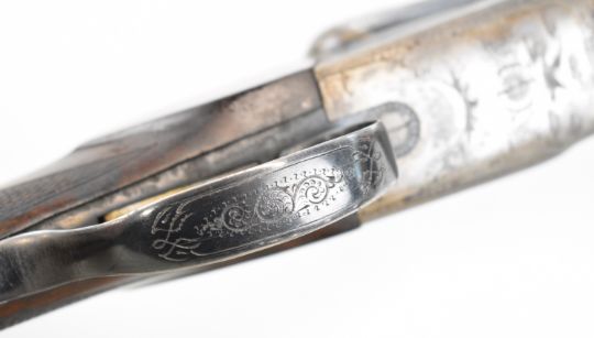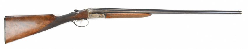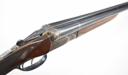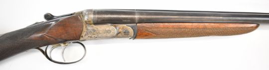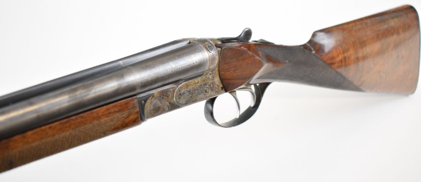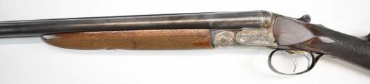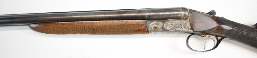 Beretta 20 bore side by side shotgun with named and engraved underside, engraved locks, trigger guard, top plate, thumb lever and fences, chequered grip and forend, double trigger and named 28 inch barrels choked ¼ and full, overall length 111.5cm, length of pull 35.5cm, serial number C58821. PLEASE NOTE THAT A VALID RELEVANT SHOTGUN CERTIFICATE IS REQUIRED TO VIEW OR PURCHASE THIS LOT AND FOR ALL SHOTGUNS OR RIFLES PLEASE ENSURE YOU HAVE THE RELEVANT CERTIFICATE BEFORE BIDDING.