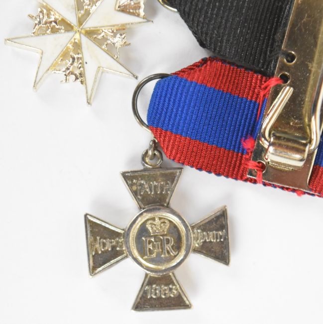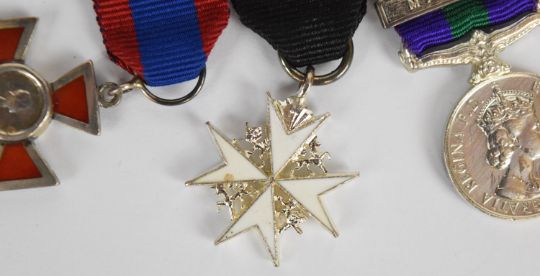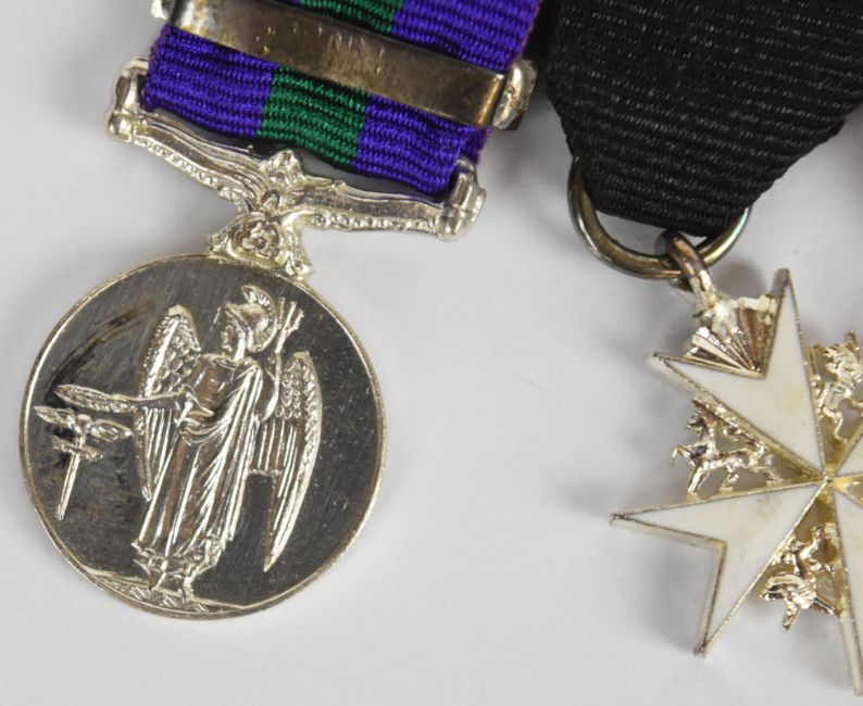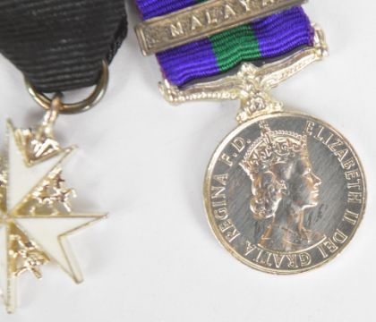 Elizabeth II RAF medal group comprising General Service Medal with Malaya clasp, the medal named to Flying Officer M.E. Johnston, Princess Mary's Royal Air Force Nursing Service, Order of St. John and OBE dated 1983, with matching set of miniatures