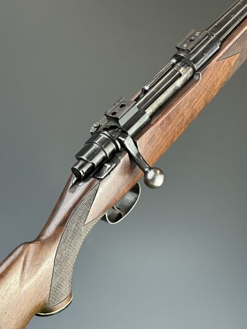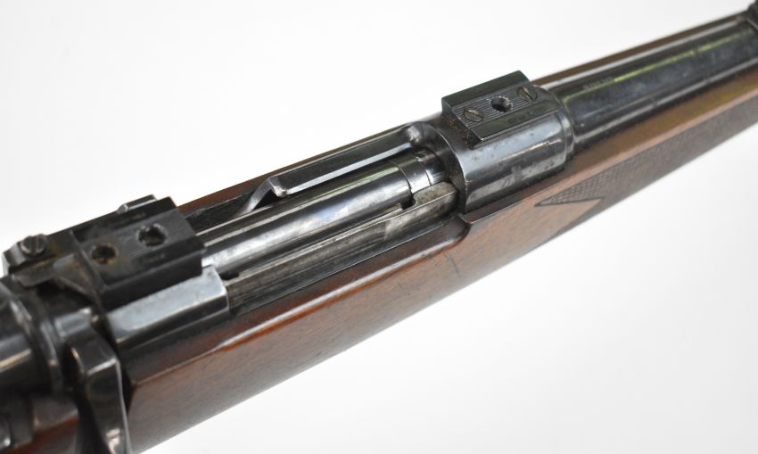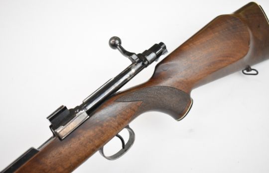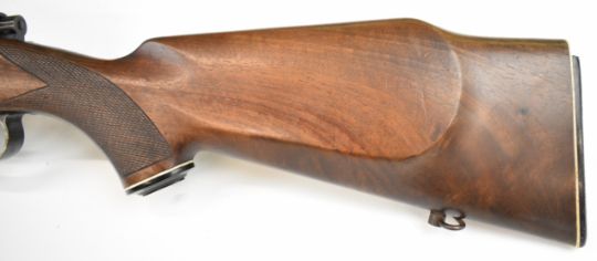 Parker-Hale .243 bolt-action rifle with chequered semi-pistol grip and forend, raised cheek piece, sling mounts, scope rails, adjustable sights and 24.5 inch barrel, overall length 113.5cm, serial number Q1496. PLEASE NOTE THAT A VALID RELEVANT FIREARMS CERTIFICATE IS REQUIRED TO VIEW OR PURCHASE THIS LOT AND FOR ALL SHOTGUNS OR RIFLES PLEASE ENSURE YOU HAVE THE RELEVANT CERTIFICATE BEFORE BIDDING.