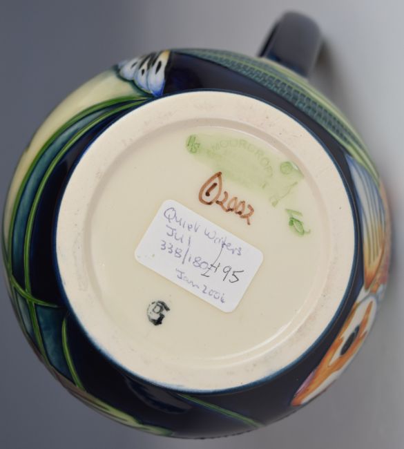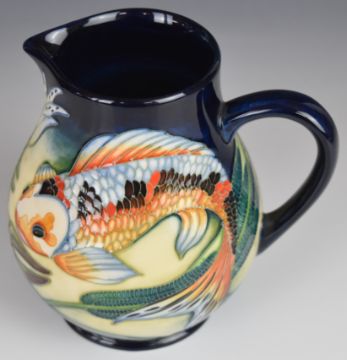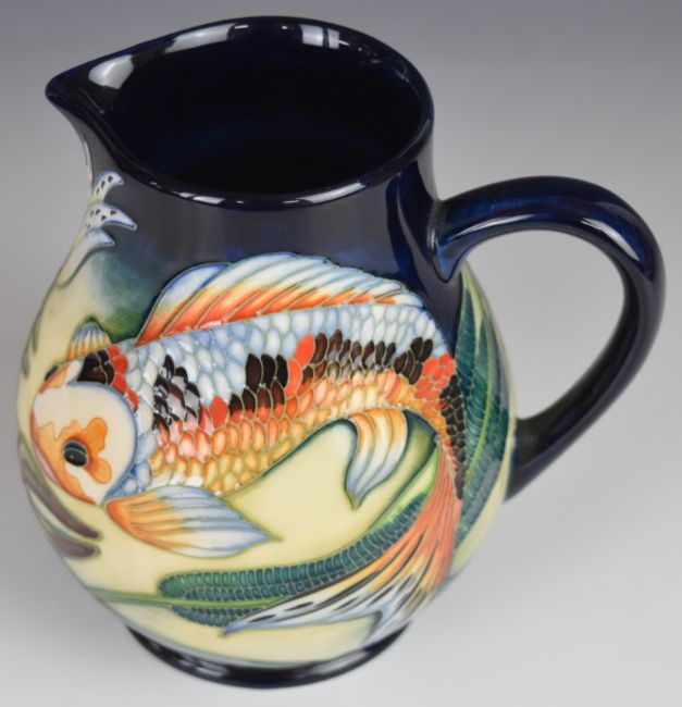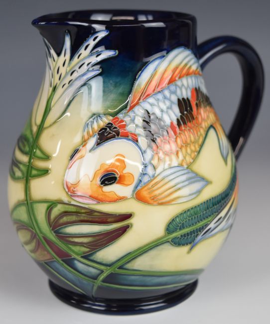 Moorcroft pedestal jug decorated with koi carp in the Quiet Waters pattern, dated 2002 to base, H15cm