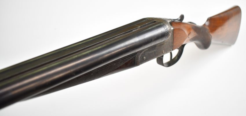 Lincoln Jefferies The Lincoln 12 bore side by side shotgun with engraved scenes of dogs to the named locks, engraved underside, trigger guards, top plate, thumb lever and fences, chequered semi-pistol grip and forend, carved teardrop tp the wrist, vacant cartouche to the underside of the stock, double trigger and 30 inch barrels choked cylinder and ¾, overall length 117cm, length of pull 35.5cm, serial number 3345. PLEASE NOTE THAT A VALID RELEVANT SHOTGUN CERTIFICATE IS REQUIRED TO VIEW OR PURCHASE THIS LOT AND FOR ALL SHOTGUNS OR RIFLES PLEASE ENSURE YOU HAVE THE RELEVANT CERTIFICATE BEFORE BIDDING.