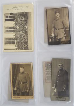 Approximately 160 German WW1 interest photographs and postcards, many used, to include studio portraits, aircraft, group photos, battlefield scenes including trenches and four 'death' cards