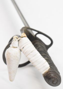 2nd Gloucestershire Artillery Volunteers Hamburger Rogers & Co. London Victorian dress sword, with wire bound shagreen grip the fullered blade having makers name and etched for the 2nd Gloucestershire Artillery Volunteers to one side and Newnham Westbury on Severn Corps to other side, in steel scabbard, overall length 101cm. PLEASE NOTE: WE ARE NOT ABLE TO OFFER OUR USUAL POSTAGE SERVICE FOR THIS LOT