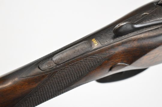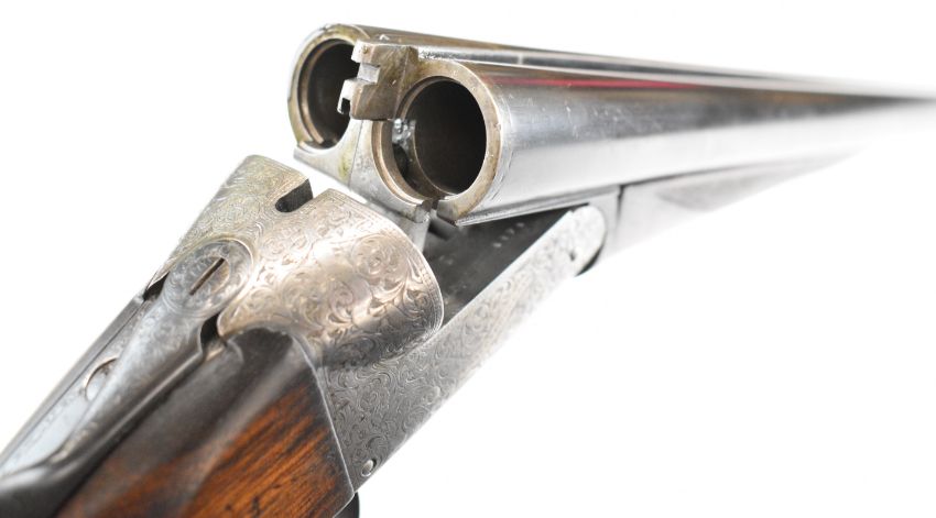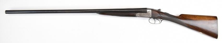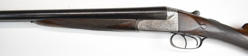 Charles Osbourne & Co 12 bore side by side ejector shotgun with named and engraved locks, engraved underside, trigger guard, top plate, fences and thumb lever, chequered grip and forend, carved teardrop to the wrist, vacant cartouche to the underside of the stock, double trigger and named 30 inch barrels choked ¾ and improved cylinder, overall length 115.5cm, length of pull 34.5cm, serial number 3433/40988. PLEASE NOTE THAT A VALID RELEVANT SHOTGUN CERTIFICATE IS REQUIRED TO VIEW OR PURCHASE THIS LOT AND FOR ALL SHOTGUNS OR RIFLES PLEASE ENSURE YOU HAVE THE RELEVANT CERTIFICATE BEFORE BIDDING.