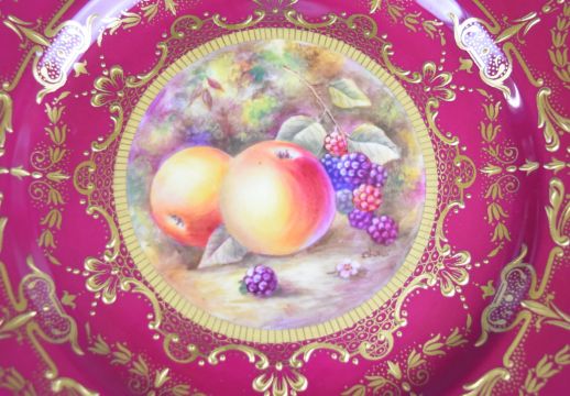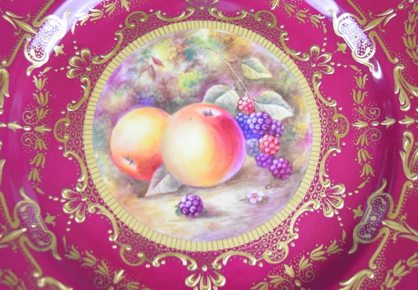Royal Worcester painted fruit cabinet plate with decoration of apple and blackberry, signed Skerret, diameter 22cm
