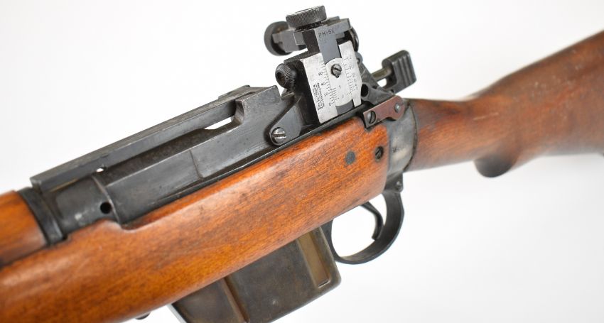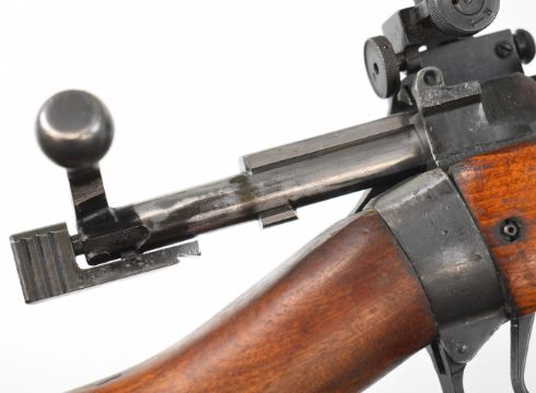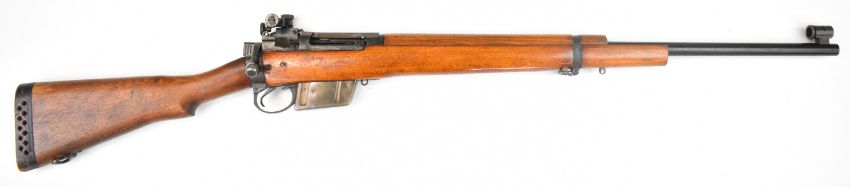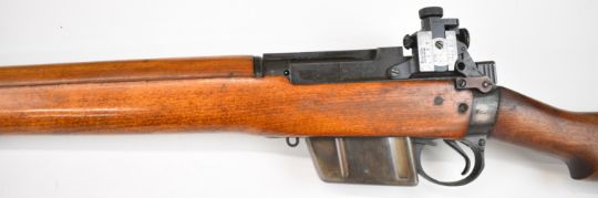 Lee Enfield .308/ 7.62 bolt-action rifle with fully adjustable Parker-Hale PH.50 target sights, sling suspension mounts, multi-shot magazine and 27.5 inch barrel, overall length 120cm, serial number M0425. PLEASE NOTE THAT A VALID RELEVANT FIREARMS CERTIFICATE IS REQUIRED TO VIEW OR PURCHASE THIS LOT AND FOR ALL SHOTGUNS OR RIFLES PLEASE ENSURE YOU HAVE THE RELEVANT CERTIFICATE BEFORE BIDDING.