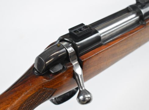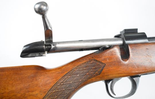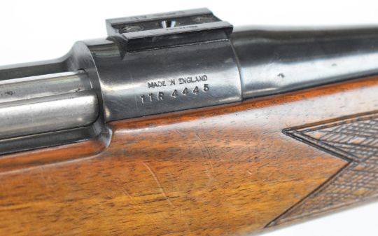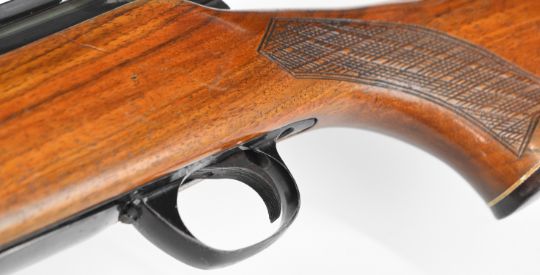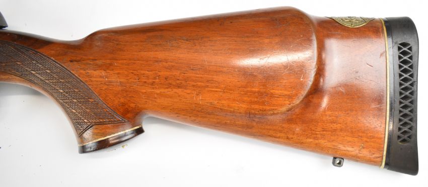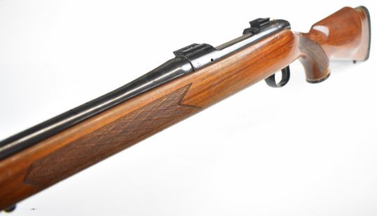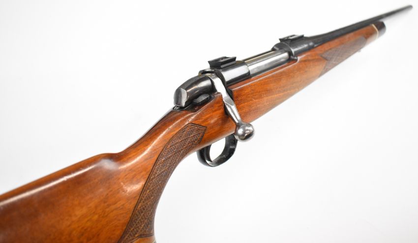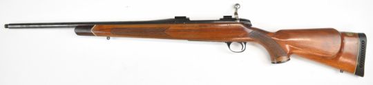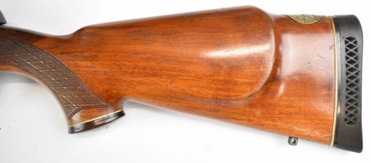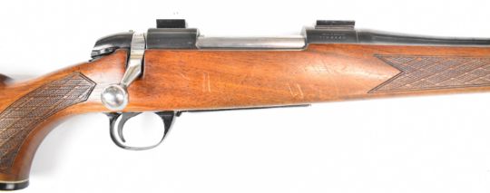 BSA .243 bolt-action rifle with chequered semi-pistol grip and forend, sling mounts, scope rails and 21 inch barrel, overall length 105cm, serial number 11R4445. PLEASE NOTE THAT A VALID RELEVANT FIREARMS CERTIFICATE IS REQUIRED TO VIEW OR PURCHASE THIS LOT AND FOR ALL SHOTGUNS OR RIFLES PLEASE ENSURE YOU HAVE THE RELEVANT CERTIFICATE BEFORE BIDDING.