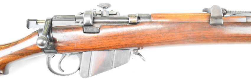 Short Magazine Lee-Enfield (SMLE) Mk III* .303 bolt-action service rifle with AJP TZ fully adjustable peep-hole target sights, adjustable alignments sights, storage compartment to the brass butt plate, frame stamped with crown over GR cypher and ' Enfield 1916 Sht.L.E. III' and 25 inch barrel, overall length 112cm, serial number C8145. PLEASE NOTE THAT A VALID RELEVANT FIREARMS CERTIFICATE IS REQUIRED TO VIEW OR PURCHASE THIS LOT AND FOR ALL SHOTGUNS OR RIFLES PLEASE ENSURE YOU HAVE THE RELEVANT CERTIFICATE BEFORE BIDDING.