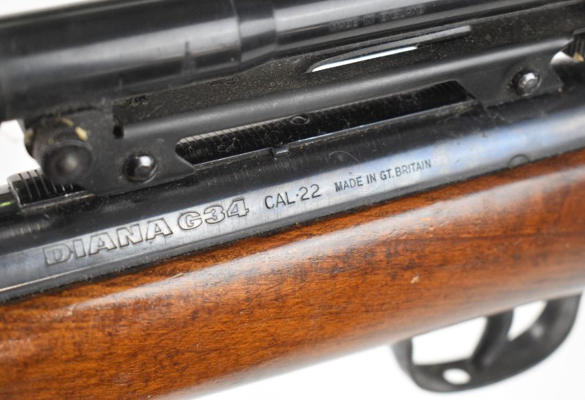 Diana G34 .22 air rifle with semi-pistol grip, adjustable sights and Mark II scope, NVSN. PLEASE NOTE IF YOU REQUIRE POSTAGE ALL POST 1939 AIR GUNS CAN ONLY BE SENT TO AN RFD.