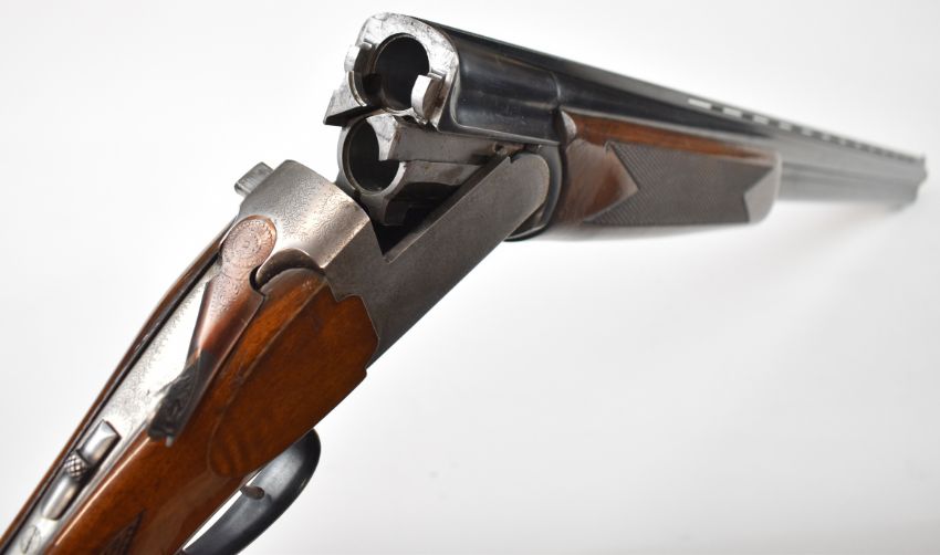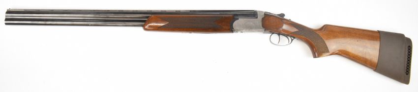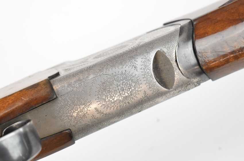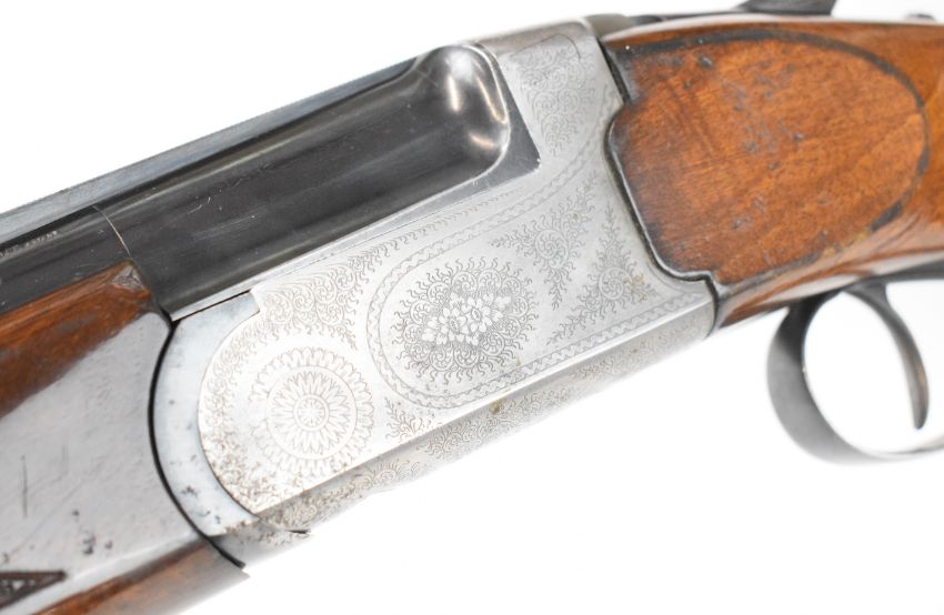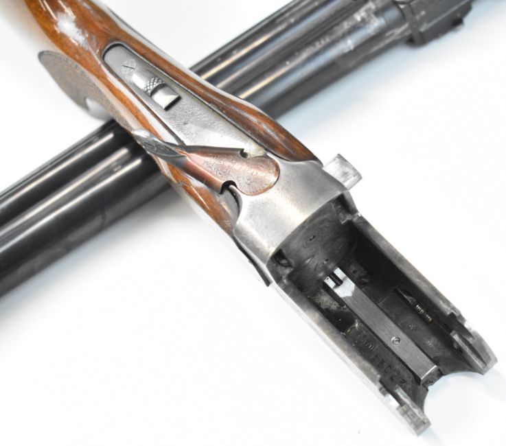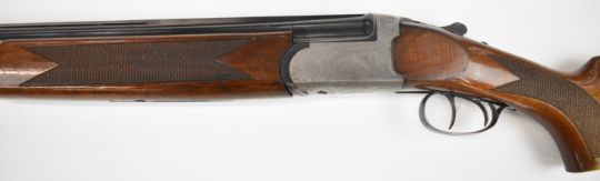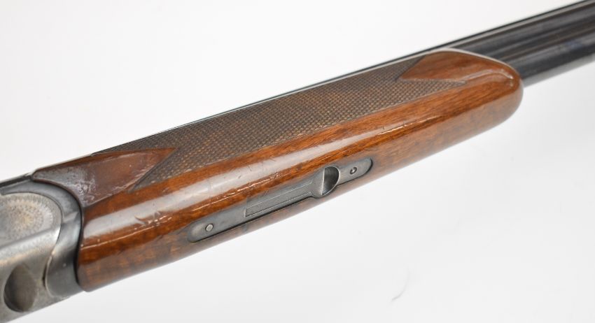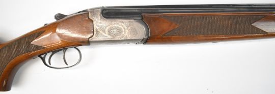 Sportarmi 12 bore over and under ejector shotgun with engraved locks, underside, top plate and thumb lever, chequered semi-pistol grip and forend, double trigger, vented top rib and 28 inch barrels choked ¾ and full, overall length 116cm, length of pull 38.5cm, serial number 2724. PLEASE NOTE THAT A VALID RELEVANT SHOTGUN CERTIFICATE IS REQUIRED TO VIEW OR PURCHASE THIS LOT AND FOR ALL SHOTGUNS OR RIFLES PLEASE ENSURE YOU HAVE THE RELEVANT CERTIFICATE BEFORE BIDDING.