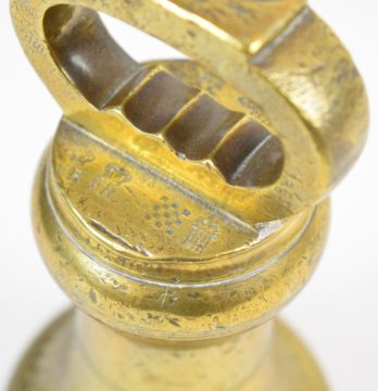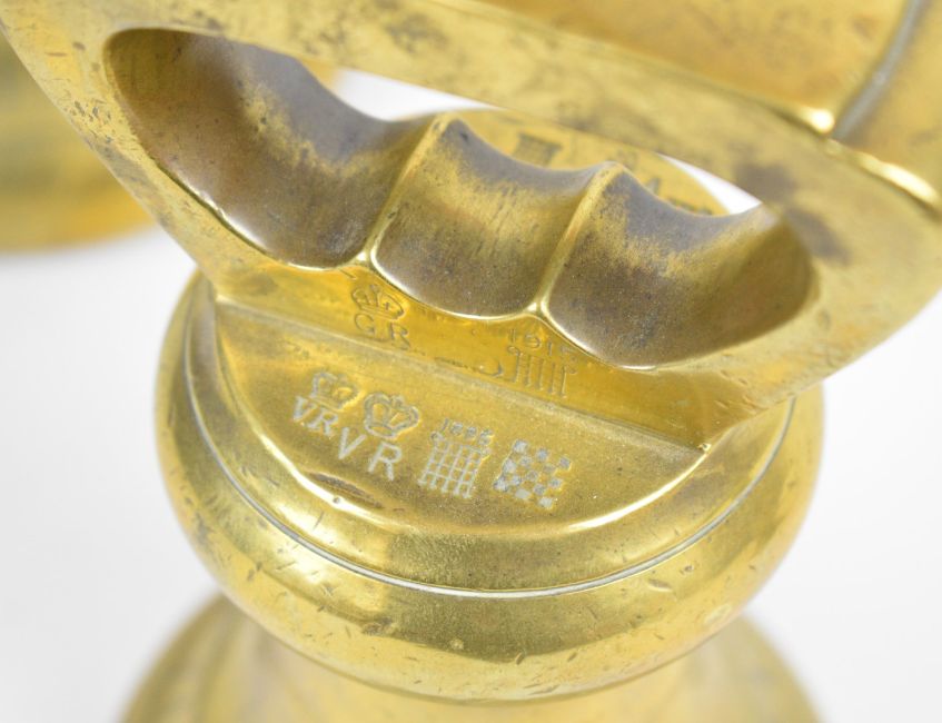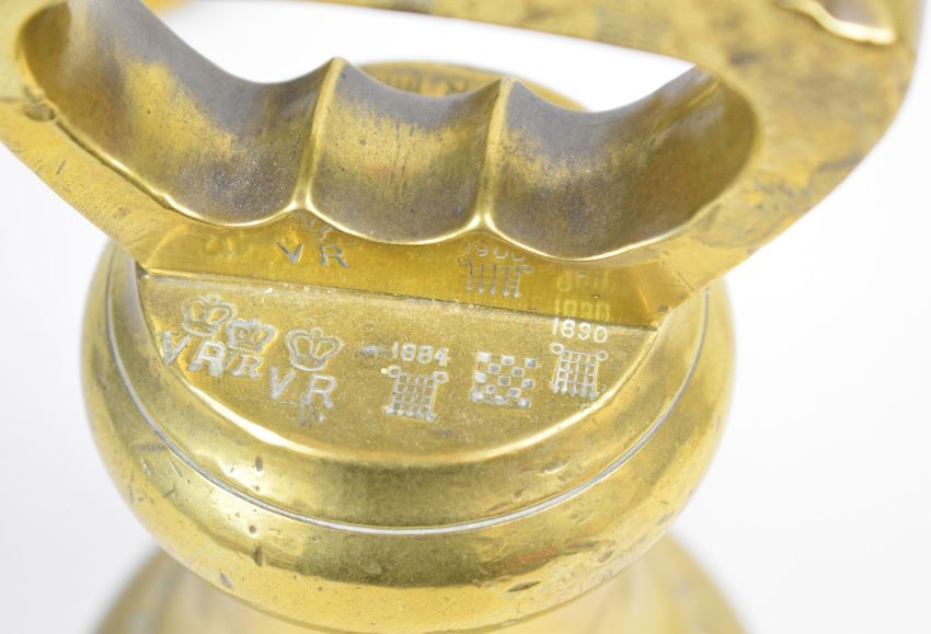 County of Southampton run of three Victorian county standard bell shaped weights comprising 28, 14 and 7lb examples, the larger two both numbered 919, dated 1844 and with verification marks from Victoria to George V, the smaller numbered 1132, dated 1855 and with a similar range of verification marks