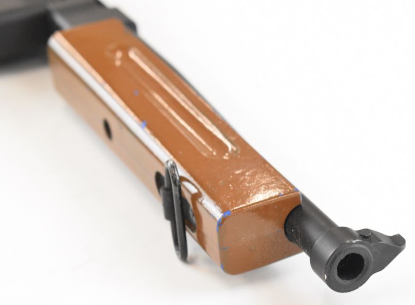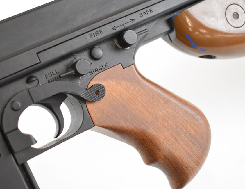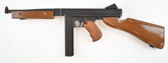 Denix replica American M1 Thompson sub machine gun with stick magazine, faux wooden stock, pistol grip and forend and 15 inch barrel, overall length 86cm, serial number 020223.