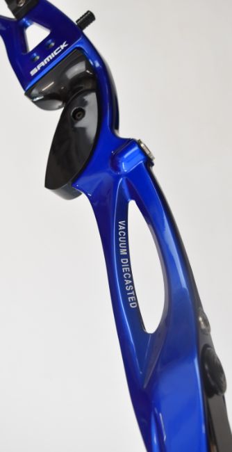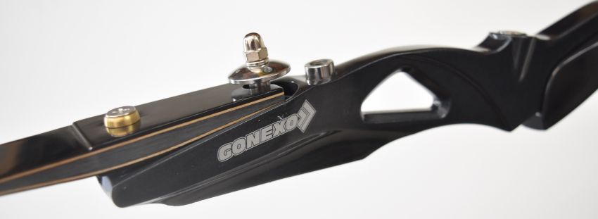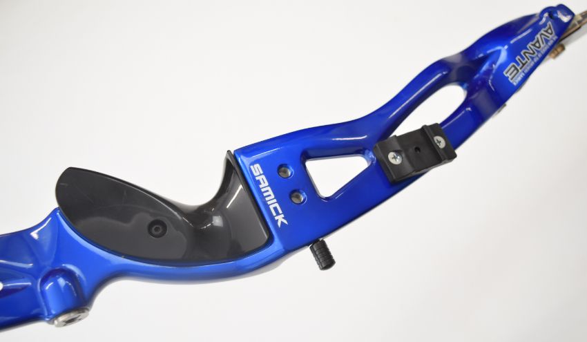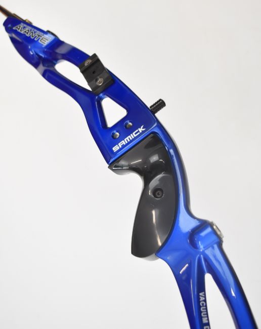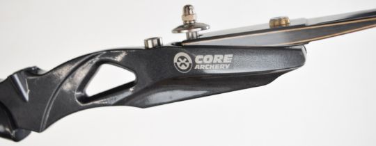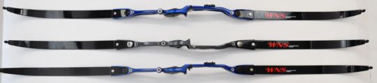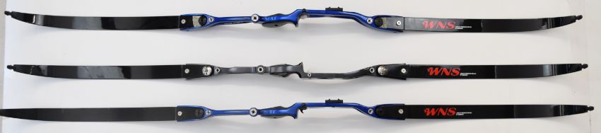 Three archery recurve bows all with metal handles and WNS Explore W1 limbs, two Samick Avante and one Core Archery Gonexo.