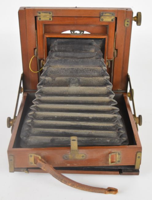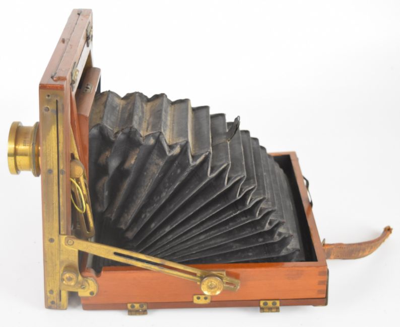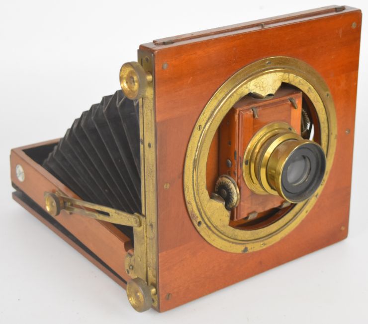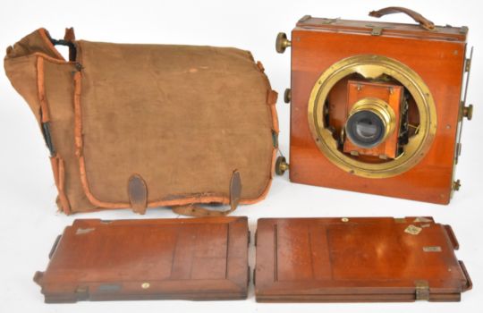 Ensign Empress mahogany plate camera with Thornton Pickard shutter and Ensign Symmetrical F-8 lens, with two film holders