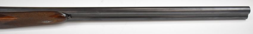 AYA Yeoman 12 bore side by side shotgun with chequered grip and forend, double trigger and named 28 inch barrels choked ¼ and cylinder, overall length 113.5cm, length of pull 36cm, serial number 382020. PLEASE NOTE THAT A VALID RELEVANT SHOTGUN CERTIFICATE IS REQUIRED TO VIEW OR PURCHASE THIS LOT AND FOR ALL SHOTGUNS OR RIFLES PLEASE ENSURE YOU HAVE THE RELEVANT CERTIFICATE BEFORE BIDDING.