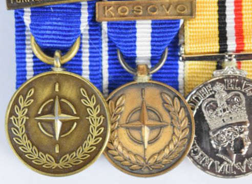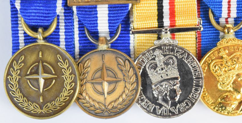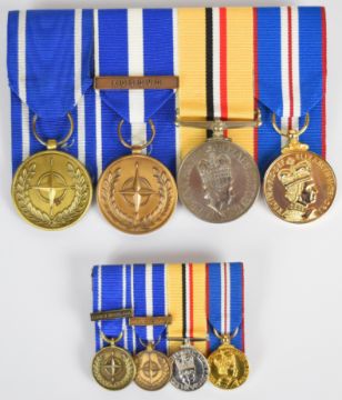 Elizabeth II Iraq and Kosovo medal group comprising Iraq medal named to W0834843 Cpl S L Atilla RLC, two NATO medals, one with Kosovo clasp and an Elizabeth II 2002 Jubilee medal, together with a matching set of miniatures, the miniatures also with Former Yugoslavia clasp to one of the NATO medals