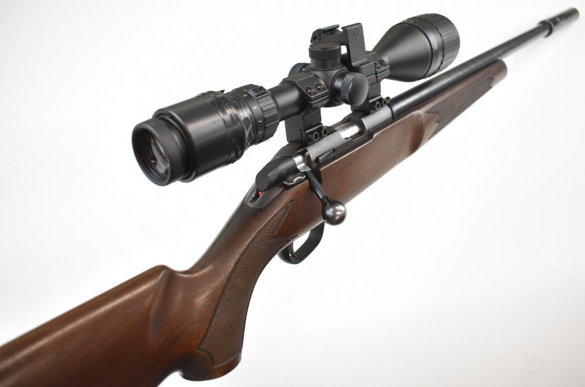 Sako P94S .22 bolt-action rifle with chequered semi-pistol grip and forend, sling mounts, Hawke 3-9x50 scope, sound moderator and 29 inch barrel, overall length 119cm, serial number 270723. PLEASE NOTE THAT A VALID RELEVANT FIREARMS CERTIFICATE IS REQUIRED TO VIEW OR PURCHASE THIS LOT AND FOR ALL SHOTGUNS OR RIFLES PLEASE ENSURE YOU HAVE THE RELEVANT CERTIFICATE BEFORE BIDDING.