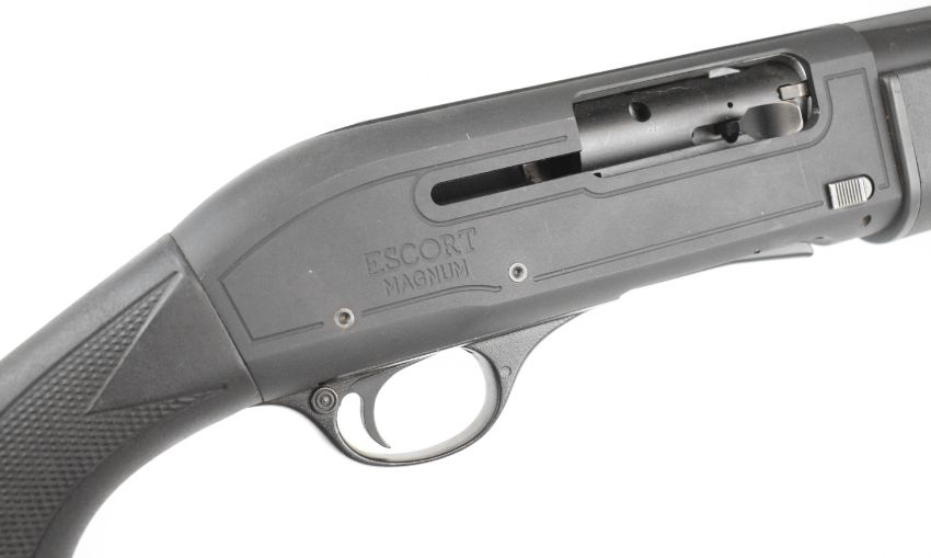 Hatsan Escort Magnum 12 bore 3-shot semi-automatic shotgun with composite stock, textured semi-pistol grip and forend, sling mounts, vented rib and 3 inch chambered 30 inch multi-choke barrel proofed for superior steel, overall length 127.5cm, length of pull 37cm, serial number 103390. PLEASE NOTE THAT A VALID RELEVANT SHOTGUN CERTIFICATE IS REQUIRED TO VIEW OR PURCHASE THIS LOT AND FOR ALL SHOTGUNS OR RIFLES PLEASE ENSURE YOU HAVE THE RELEVANT CERTIFICATE BEFORE BIDDING.