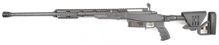 Sabatti STR .300 Winchester Magnum bolt-action rifle with textured pistol grip, adjustable skeleton stock, multi-shot magazine, scope rail and 28 inch barrel, overall length 122cm, serial number R76809, in original padded carry case. PLEASE NOTE THAT A VALID RELEVANT FIREARMS CERTIFICATE IS REQUIRED TO VIEW OR PURCHASE THIS LOT AND FOR ALL SHOTGUNS OR RIFLES PLEASE ENSURE YOU HAVE THE RELEVANT CERTIFICATE BEFORE BIDDING.