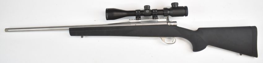 Howa Model 1500 .308 bolt-action rifle with composite stock, textured semi-pistol grip and forend, Hawke 3-10x44 IR scope and 23 inch barrel, overall length 108cm, serial number B379236. PLEASE NOTE THAT A VALID RELEVANT FIREARMS CERTIFICATE IS REQUIRED TO VIEW OR PURCHASE THIS LOT AND FOR ALL SHOTGUNS OR RIFLES PLEASE ENSURE YOU HAVE THE RELEVANT CERTIFICATE BEFORE BIDDING.