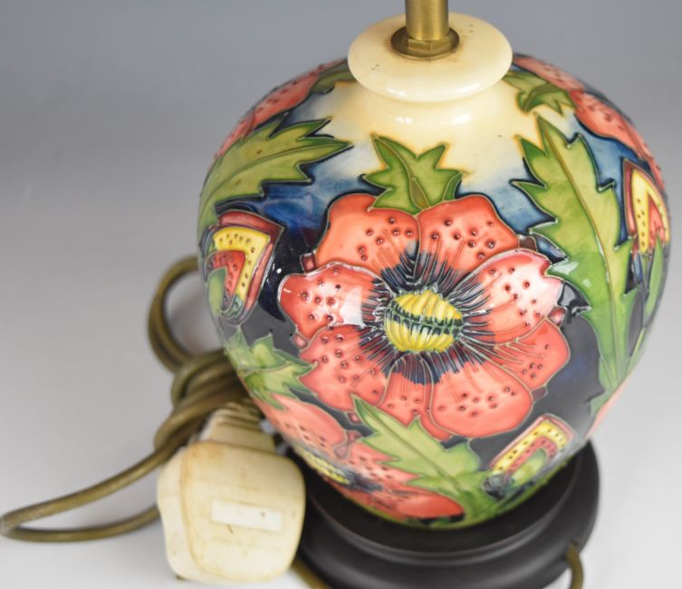 Moorcroft pedestal table lamp decorated in the Pheasant's Eye pattern, H27cm