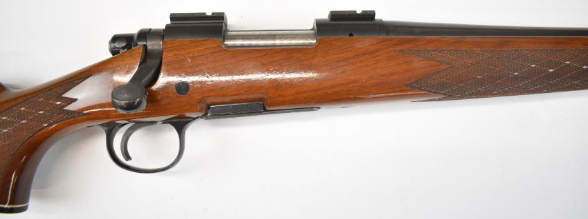 Remington 700 .308 bolt-action rifle with chequered semi-pistol grip and forend, raised cheek piece, sling mounts, scope rails and 22.5 inch barrel, overall length 104cm, serial number D6235047. PLEASE NOTE THAT A VALID RELEVANT FIREARMS CERTIFICATE IS REQUIRED TO VIEW OR PURCHASE THIS LOT AND FOR ALL SHOTGUNS OR RIFLES PLEASE ENSURE YOU HAVE THE RELEVANT CERTIFICATE BEFORE BIDDING.