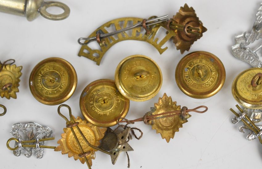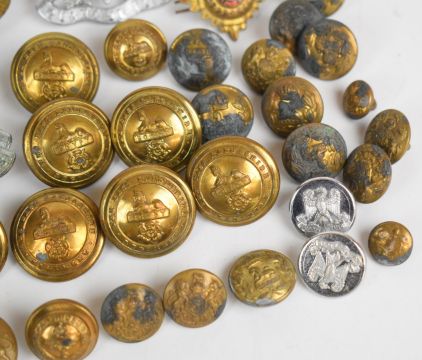 Military badges and buttons to include Stonyhurst OTC College, Royal West Kent, Royal Artillery and East Lancashire Regiment,