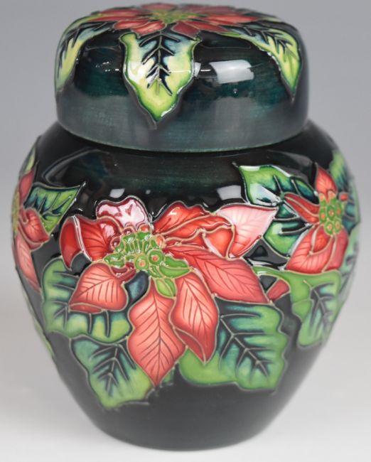 Moorcroft covered ginger jar decorated in the Poinsettia pattern, dated 2002, H11cm