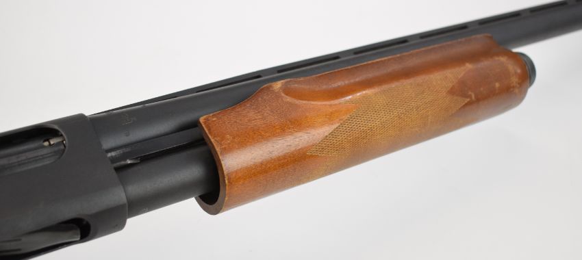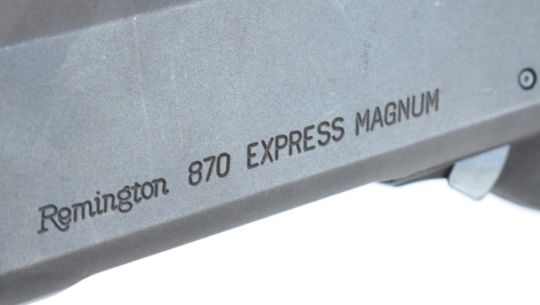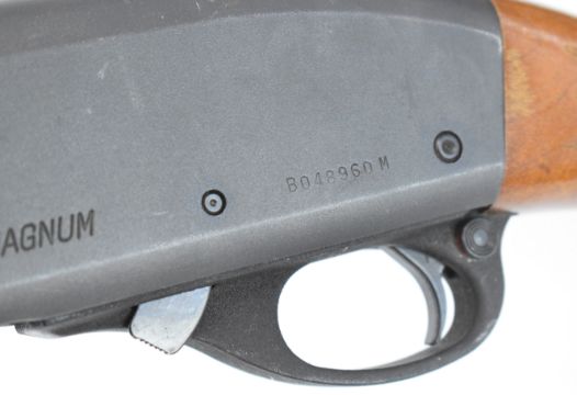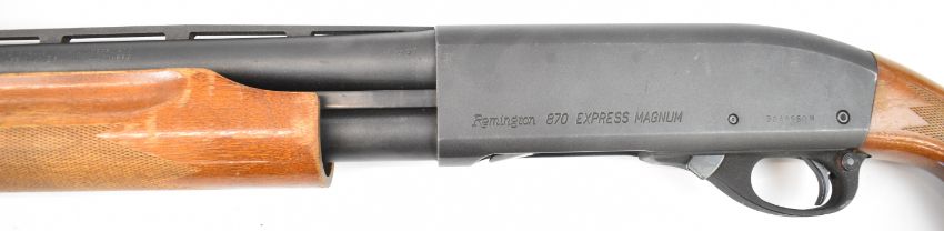 Remington 870 Express Magnum 3-shot pump-action shotgun with chequered semi-pistol grip and forend, vented rib and 27.5 inch multi-choke barrel, overall length 122cm, length of pull 35cm, serial number B048960M. PLEASE NOTE THAT A VALID RELEVANT SHOTGUN CERTIFICATE IS REQUIRED TO VIEW OR PURCHASE THIS LOT AND FOR ALL SHOTGUNS OR RIFLES PLEASE ENSURE YOU HAVE THE RELEVANT CERTIFICATE BEFORE BIDDING.