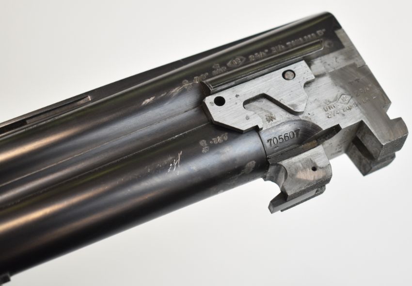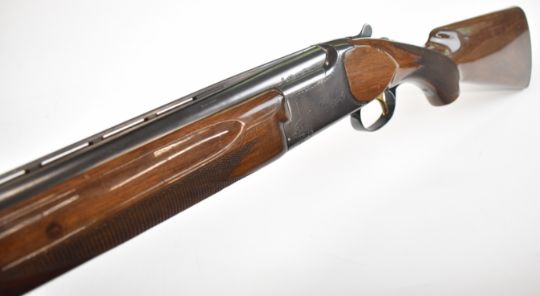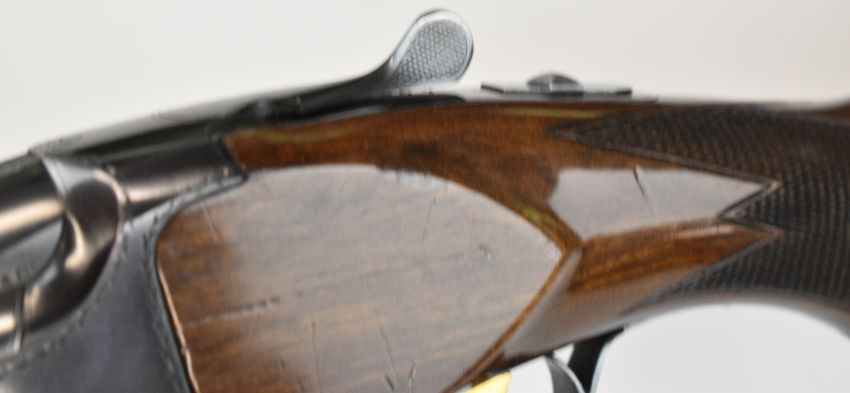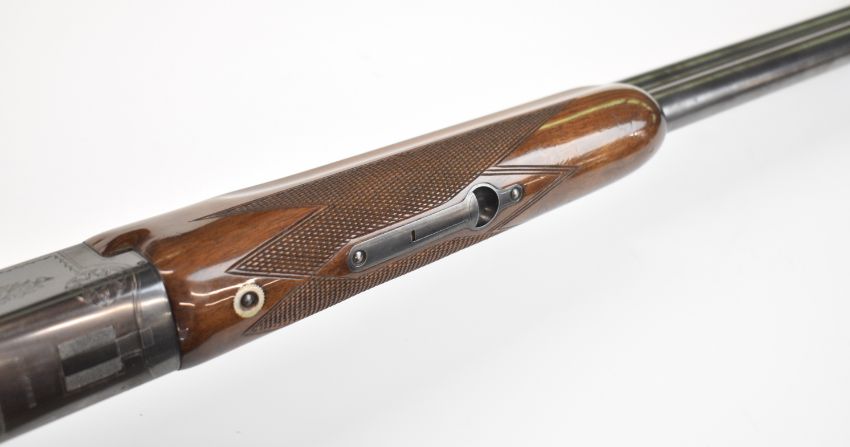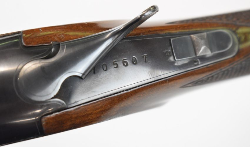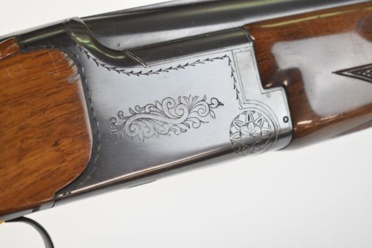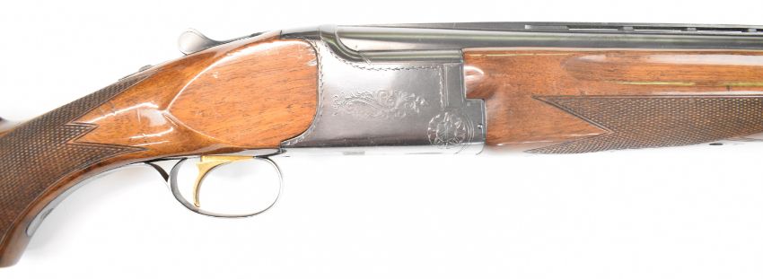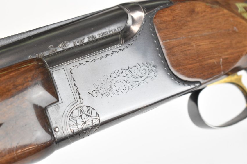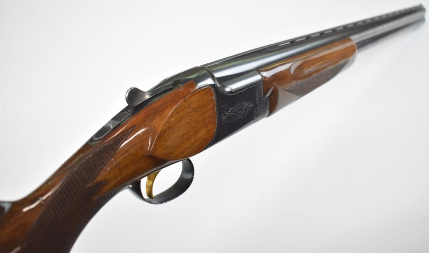Miroku 800 12 bore over and under ejector shotgun with engraved action, chequered semi-pistol grip and forend, single trigger, vented top rib and 28 inch barrels choked full and improved cylinder, overall length 114cm, length of pull 35.5cm, serial number 705607. PLEASE NOTE THAT A VALID RELEVANT SHOTGUN CERTIFICATE IS REQUIRED TO VIEW OR PURCHASE THIS LOT AND FOR ALL SHOTGUNS OR RIFLES PLEASE ENSURE YOU HAVE THE RELEVANT CERTIFICATE BEFORE BIDDING.