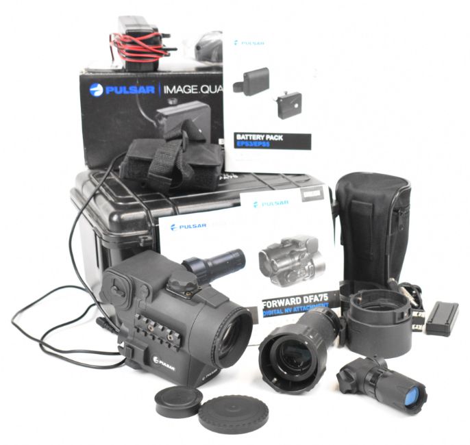 Pulsar Forward DFA 75 digital night vision telescopic sight/ scope attachment with EPS 5 battery pack and 50mm cover ring adapter, in original hard carry case and boxes.