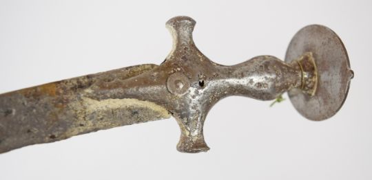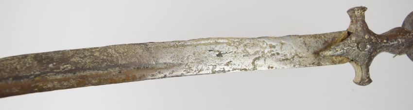 French 1886 pattern Lebel bayonet with downswept quillon, button catch, 52cm cruciform blade and scabbard, together with an Indian style tulwar sword and scabbard. PLEASE NOTE: WE ARE NOT ABLE TO OFFER OUR USUAL POSTAGE SERVICE FOR THIS LOT