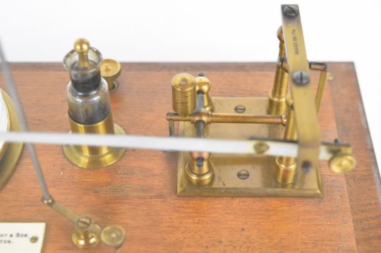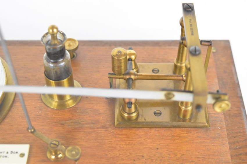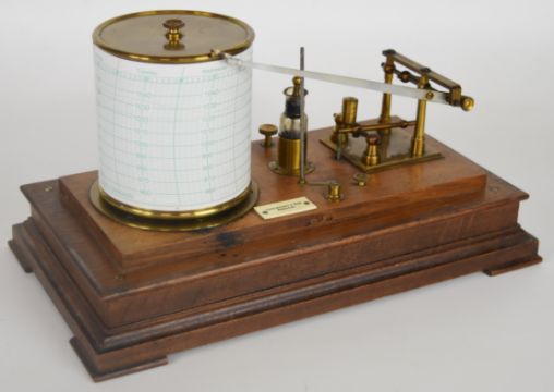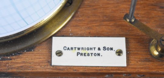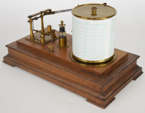 Cartwright & Son Preston oak cased barograph with gilt metal movement, the base mounted with an ivorine plaque with maker's name, length 32cm