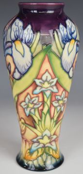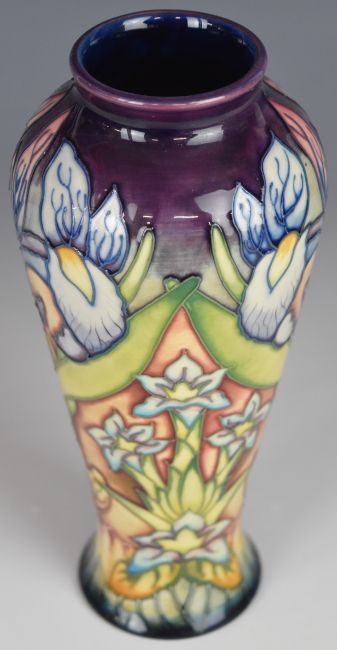 Moorcroft vase decorated in the Geneva / Gentian pattern, dated 99 to base, H21.5 cm