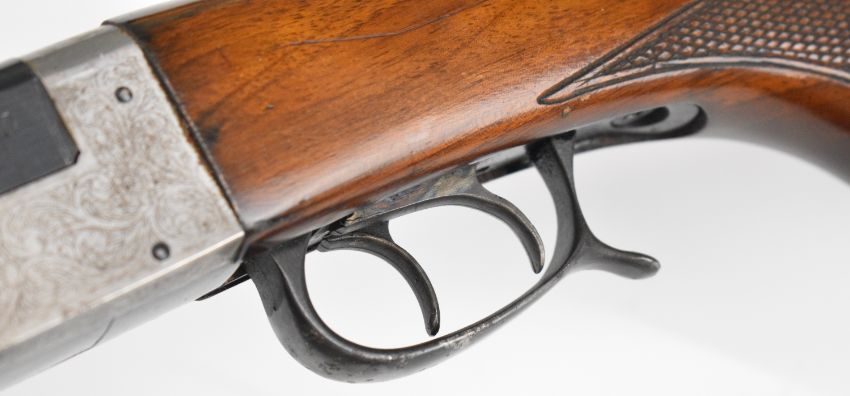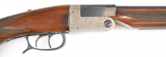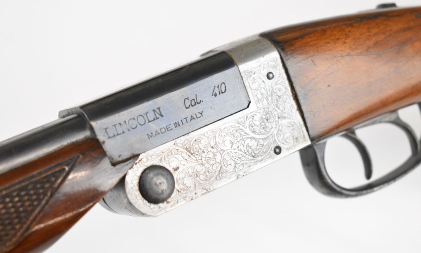Lincoln .410 side by side folding poacher's shotgun with chequered semi-pistol grip and forend, double trigger and 25.5 inch barrels, overall length 105cm, length of pull 35.5cm, serial number 86612. PLEASE NOTE THAT A VALID RELEVANT SHOTGUN CERTIFICATE IS REQUIRED TO VIEW OR PURCHASE THIS LOT AND FOR ALL SHOTGUNS OR RIFLES PLEASE ENSURE YOU HAVE THE RELEVANT CERTIFICATE BEFORE BIDDING.