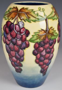 Moorcroft Pottery vase decorated in the Grapevine / Red Grapes pattern, H18cm
