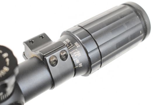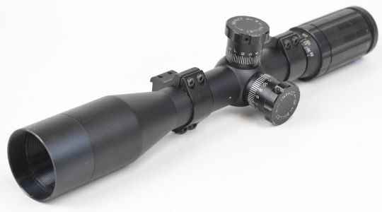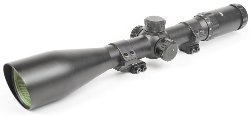 Three various rifle scopes comprising Tasco 24x44, one Fox style and one other.