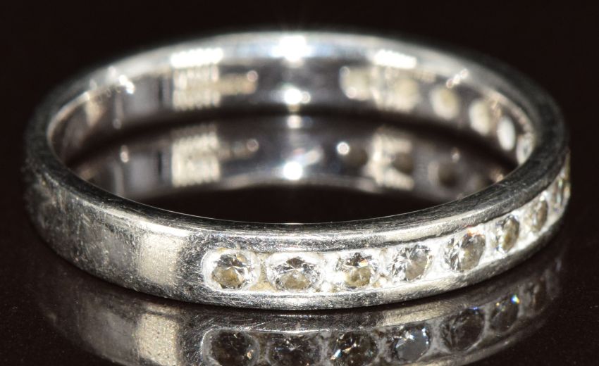 A platinum half eternity ring set with fifteen round cut diamonds, in original Martin & Co box, 3.9g, size N