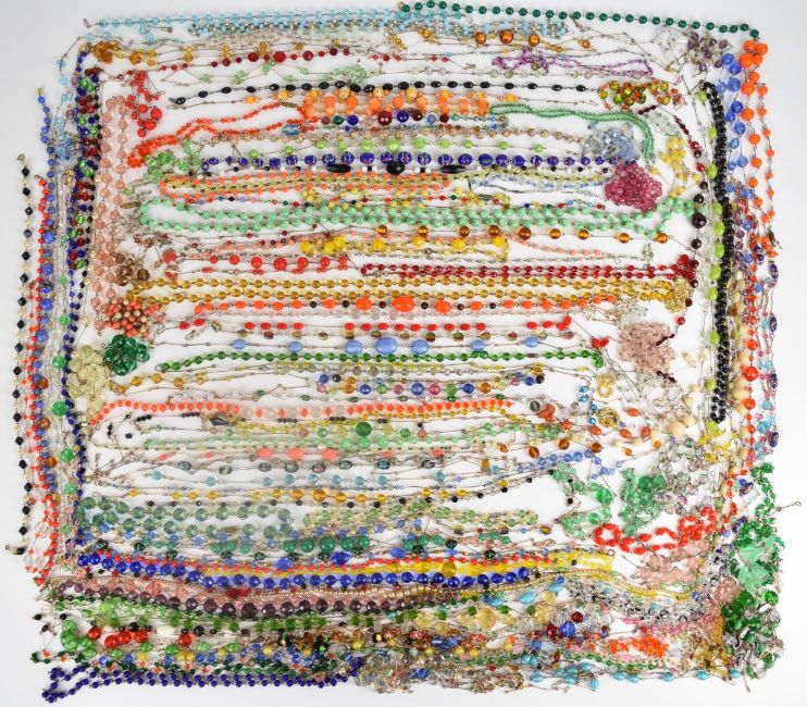 A large collection of Art Deco crystal and glass beaded necklaces