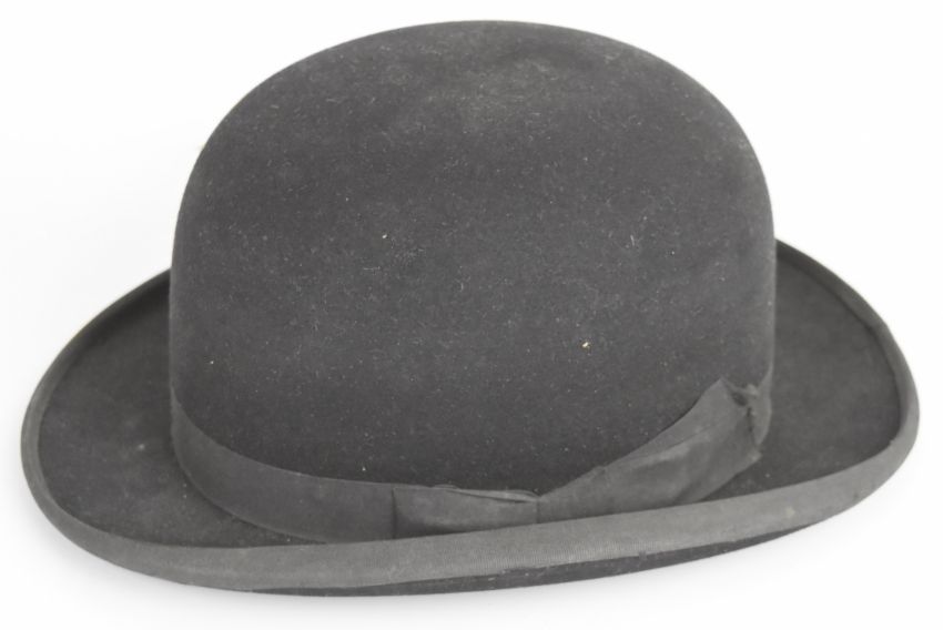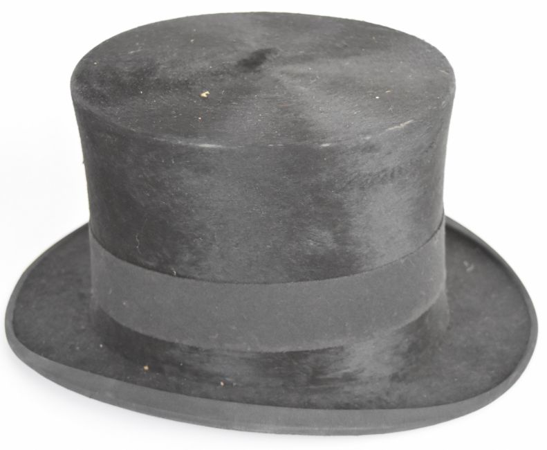 Two silk top hats and a bowler hat, top hats 6¾ or 21 5/8, the bowler slightly smaller