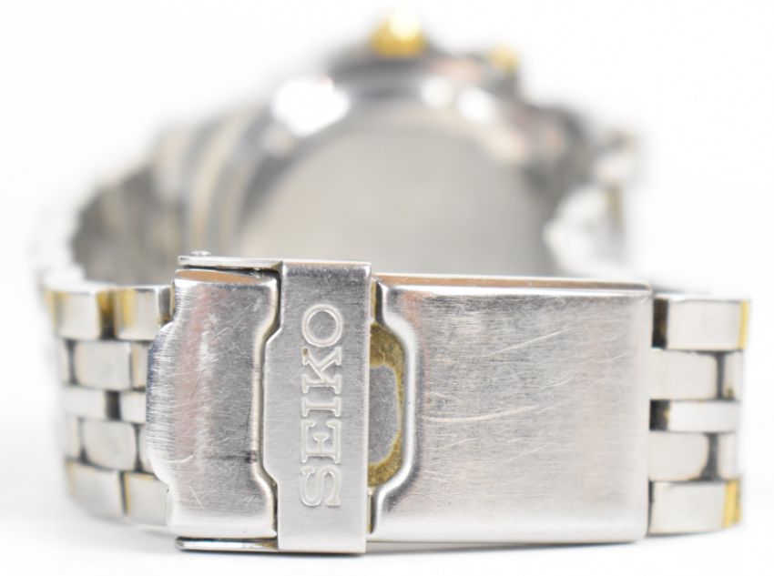 Three gentleman's wristwatches Seiko Kinetic ref. 5M42-0L20, Bulova Accuquartz ref. N4 and Avia Daytyme, largest case diameter 40mm.