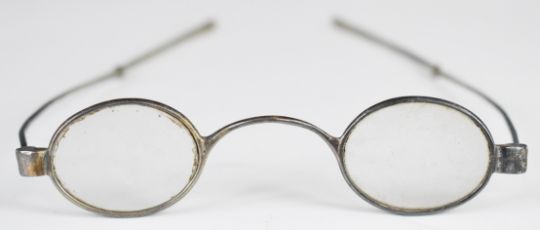 William IV pair of hallmarked silver spectacles with folding arms, Birmingham 1831, maker Joseph Willmore, width when folded 11cm