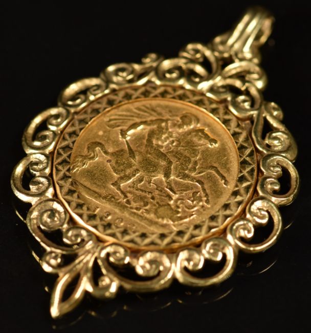 1902 gold half sovereign in 9ct gold pendant mount, 9g